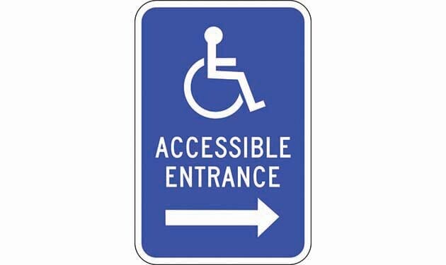Accessible Symbol, Accessible Entrance with Right Arrow Sign