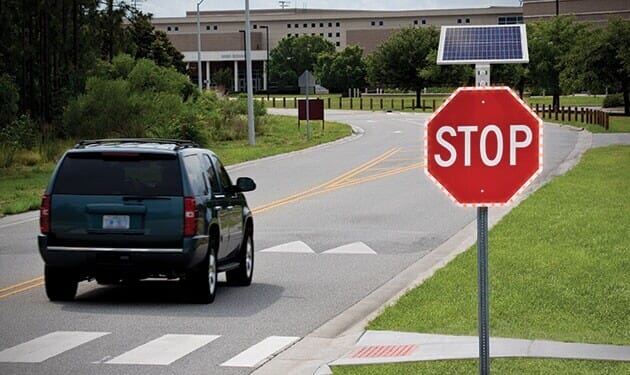 - Flashing stop signs provide a 28.9% reduction in the number of vehicles not fully stopping and a 52.9% reduction in the number of vehicles moving through the intersection without significantly slowing (*2004 Texas Transportation Institute study)
