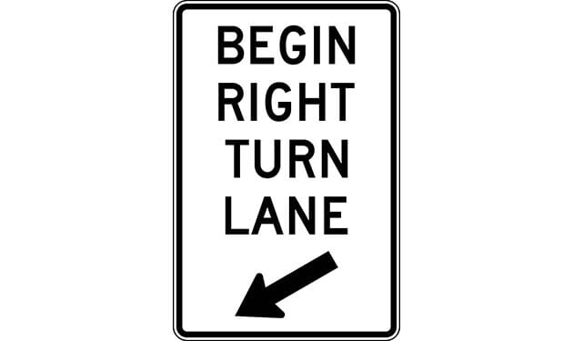 Begin Right Turn Lane with Down Arrow Sign