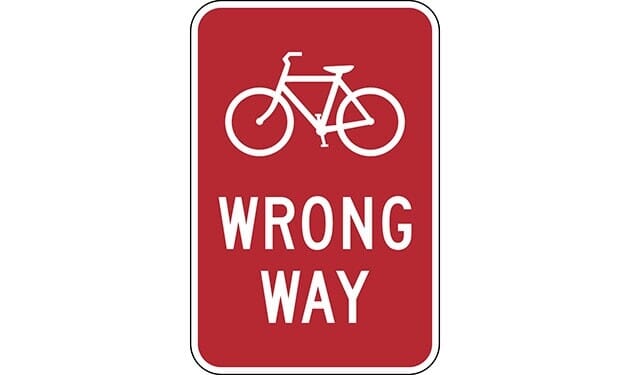 Bicycle Wrong Way with Bicycle Symbol Sign
