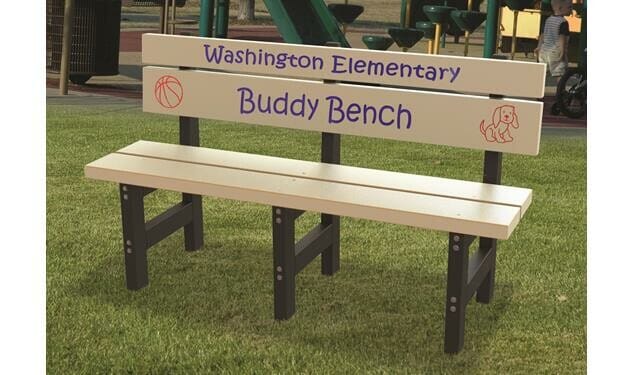 | Treetop Product Name | Buddy Bench for Little Buddies/ 4' Bench/ 2 Engraved Boards/ Cedar/Black Frame/ Blue Inlay no icons |
