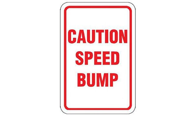 - Caution Speed Bump sign alerts drivers & pedestrians