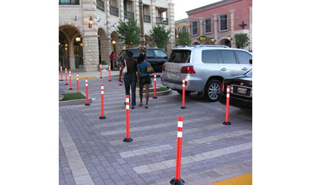 - Clearly delineate with highly visible bright colors and two 3" bands of high-intensity reflective sheeting