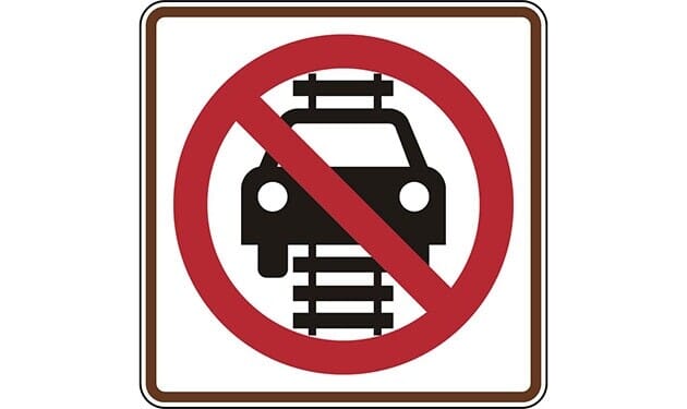 Do Not Drive on Tracks Light Rail Symbol Sign
