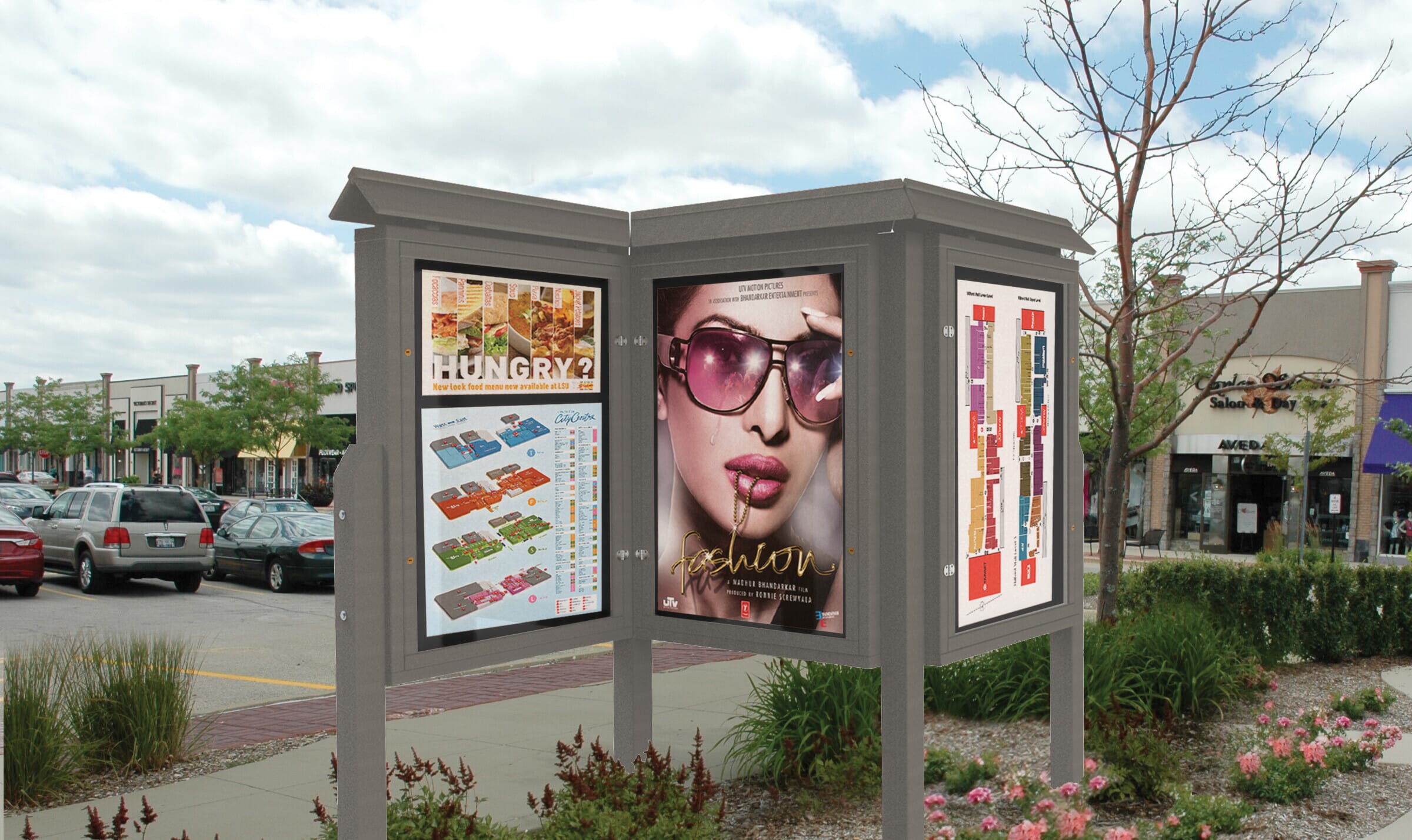 - Unique, weatherproof double-sided information display