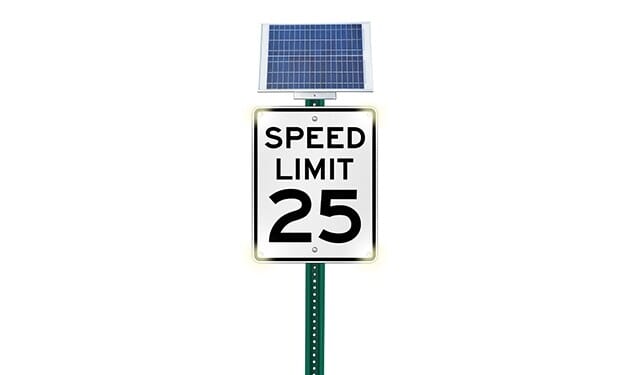 - 24" x 30" aluminum speed limit sign has 4 built-in LEDs