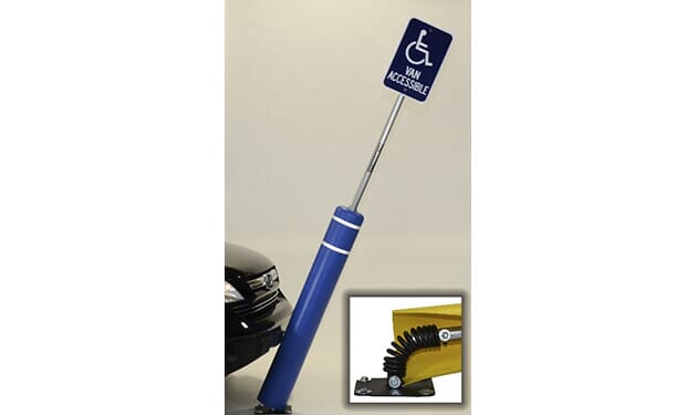 Heavy-duty spring makes bollard flex upon impact.