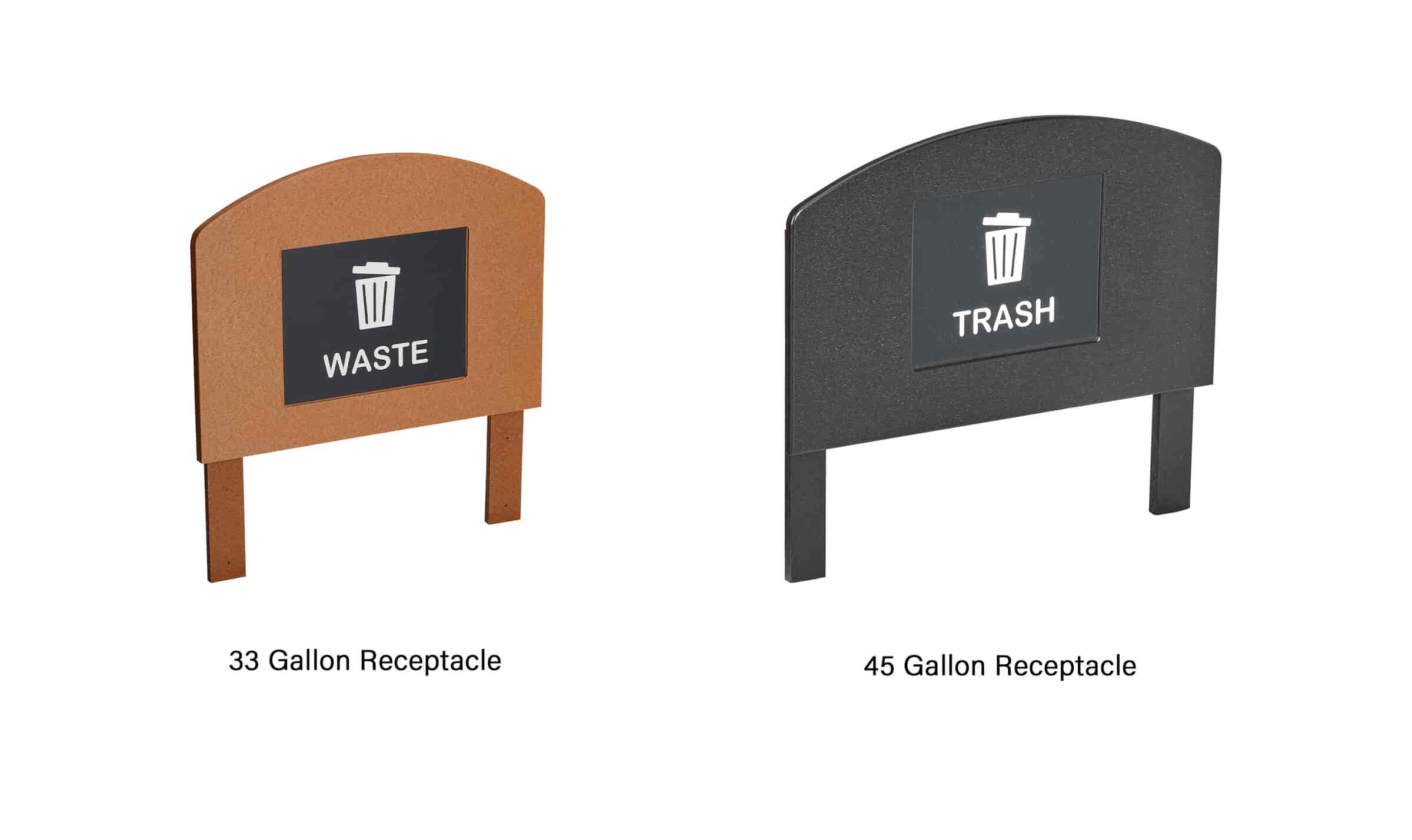- Choose headboard for 33 or 45-gallon receptacle
