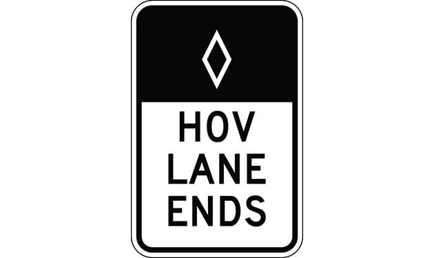 HOV Lane Ends Preferential Lane Sign