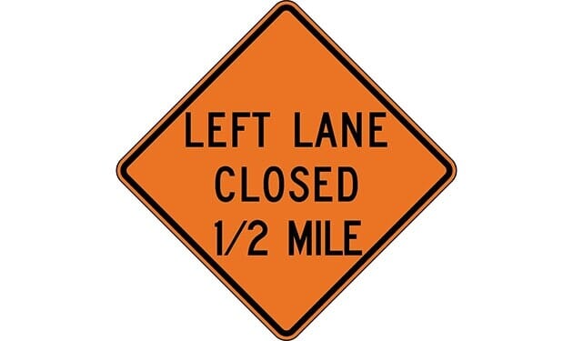 Left Lane Closed 1/2 Mile Construction Sign