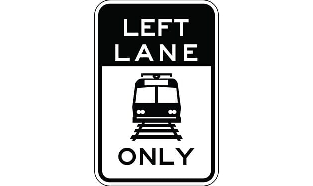 Light Rail Symbol Left Lane Only Sign