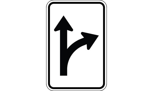 Mandatory Movement Lane Control Ahead with Right Arrow Sign