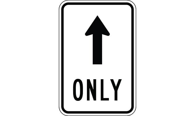 Mandatory Movement Only Ahead with Up Arrow Sign