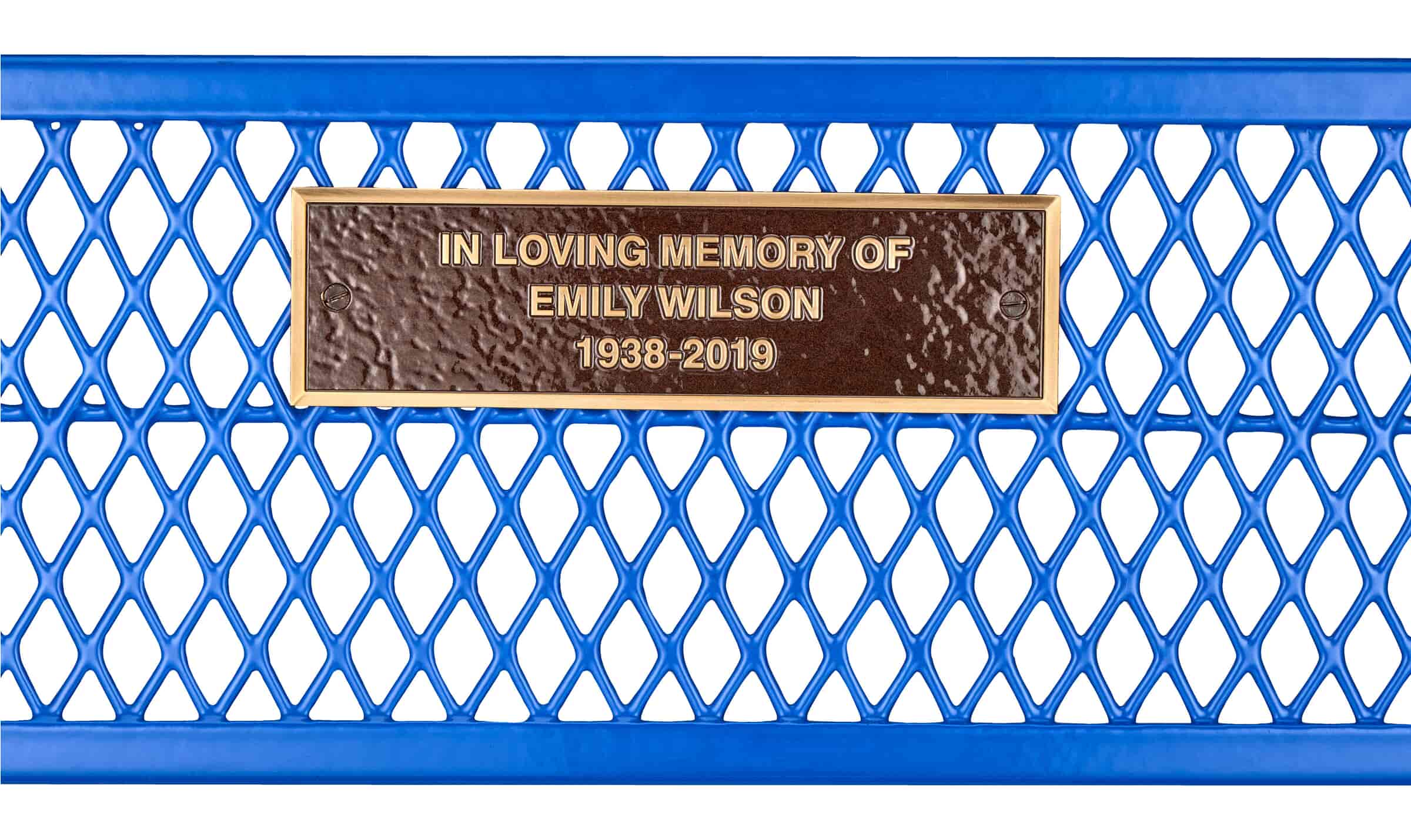 - Plaques can be mounted on our slatted, expanded and perforated metal benches