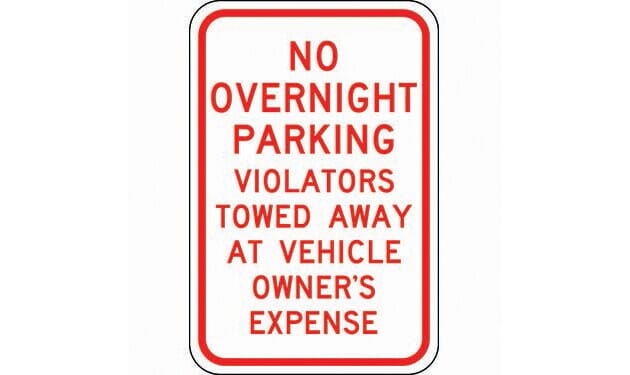 "No Overnight Parking Violators Towed Away At Vehicle Owner's Expense"