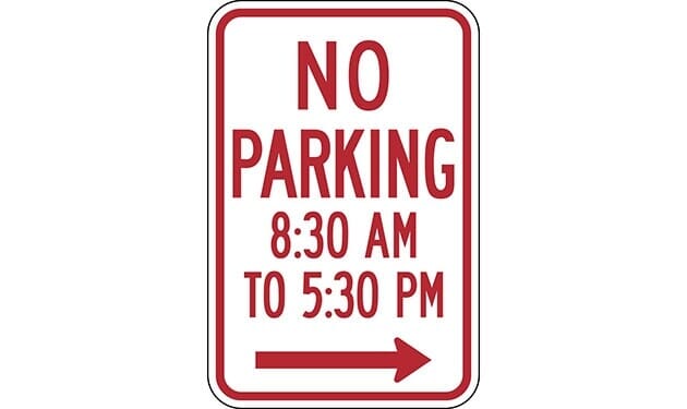 No Parking 8:30 A.M to 5:30 P.M with Right Arrow Sign