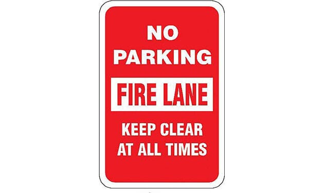 "No Parking - Fire Lane - Keep Clear At All Times"
