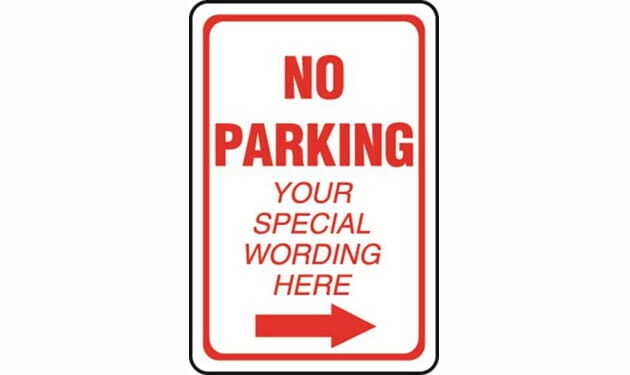 "No Parking" followed by Your Own Text with Right Arrow