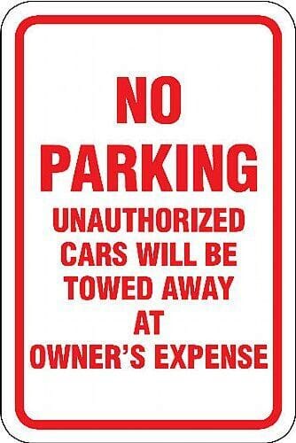 "No Parking Unauthorized Cars Will Be Towed Away At Owner's Expense"