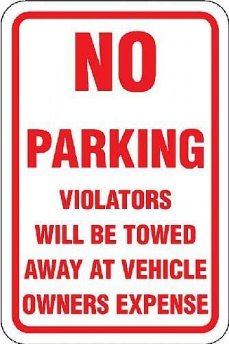 "No Parking Violators Will Be Towed Away At Vehicle Owners Expense"