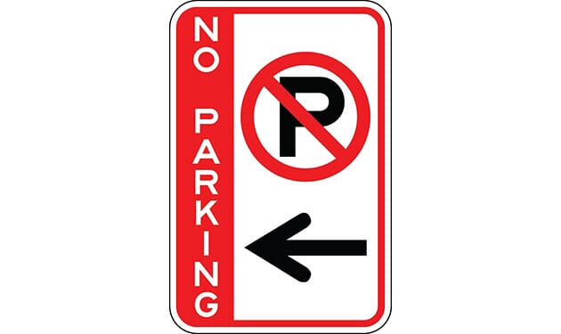 No Parking with Symbol & Left Arrow - Side Bar Sign
