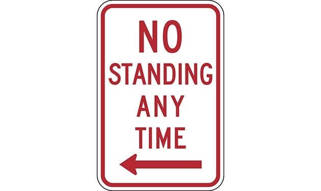 No Standing Any Time with Left Arrow Sign