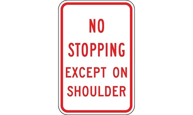 No Stopping Except On Shoulder Sign