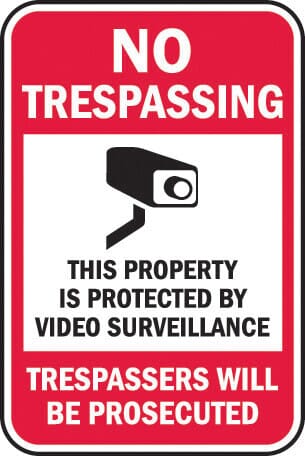 "No Trespassing - This Property Is Protected By Video Surveillance - Trespassers Will Be Prosecuted"