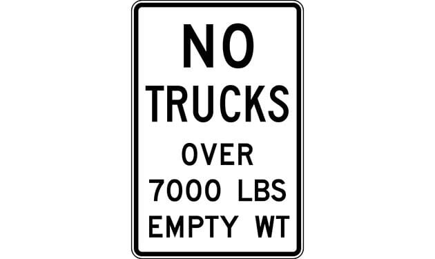 No Trucks Over 7000 lbs. Empty Weight Sign
