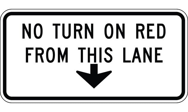 No Turn on Red From This Lane Sign