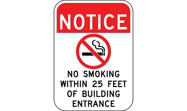 Notice No Smoking Within 25 Ft Of Building with Symbol Sign