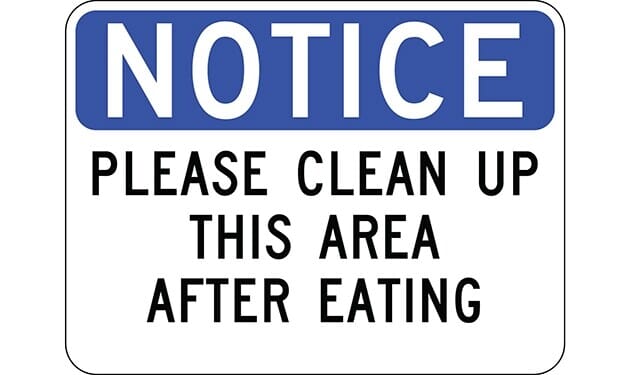 Notice Please Clean Up This Area After Eating Sign