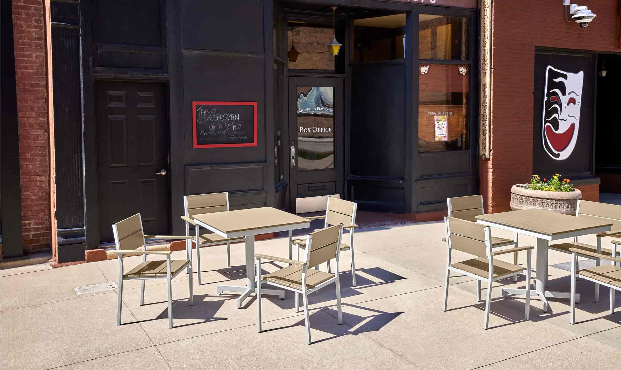Conserve space with patio set ideal for outdoor cafes, storefronts or restaurants