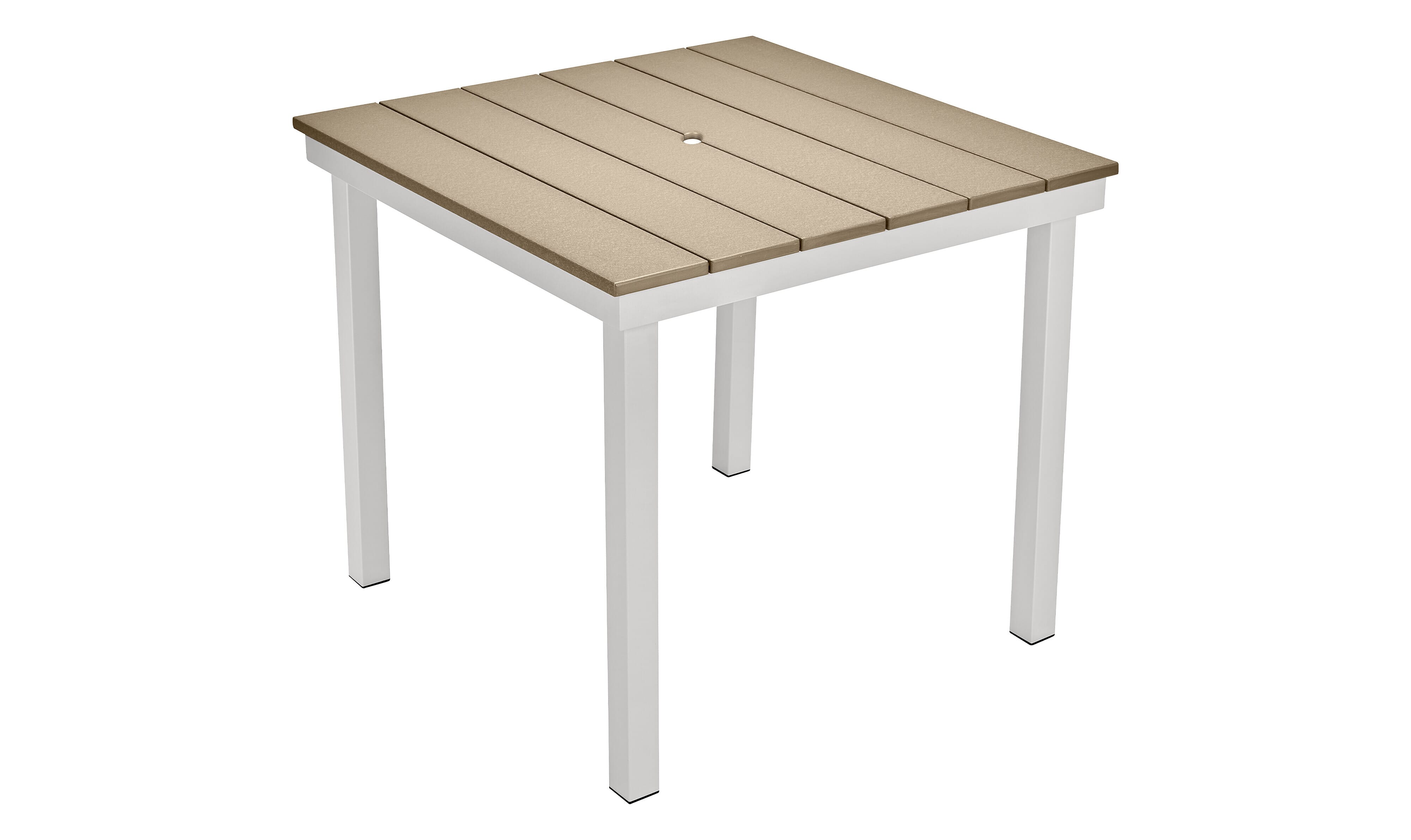 Space saving patio table ideal for outdoor cafes, storefronts or restaurants