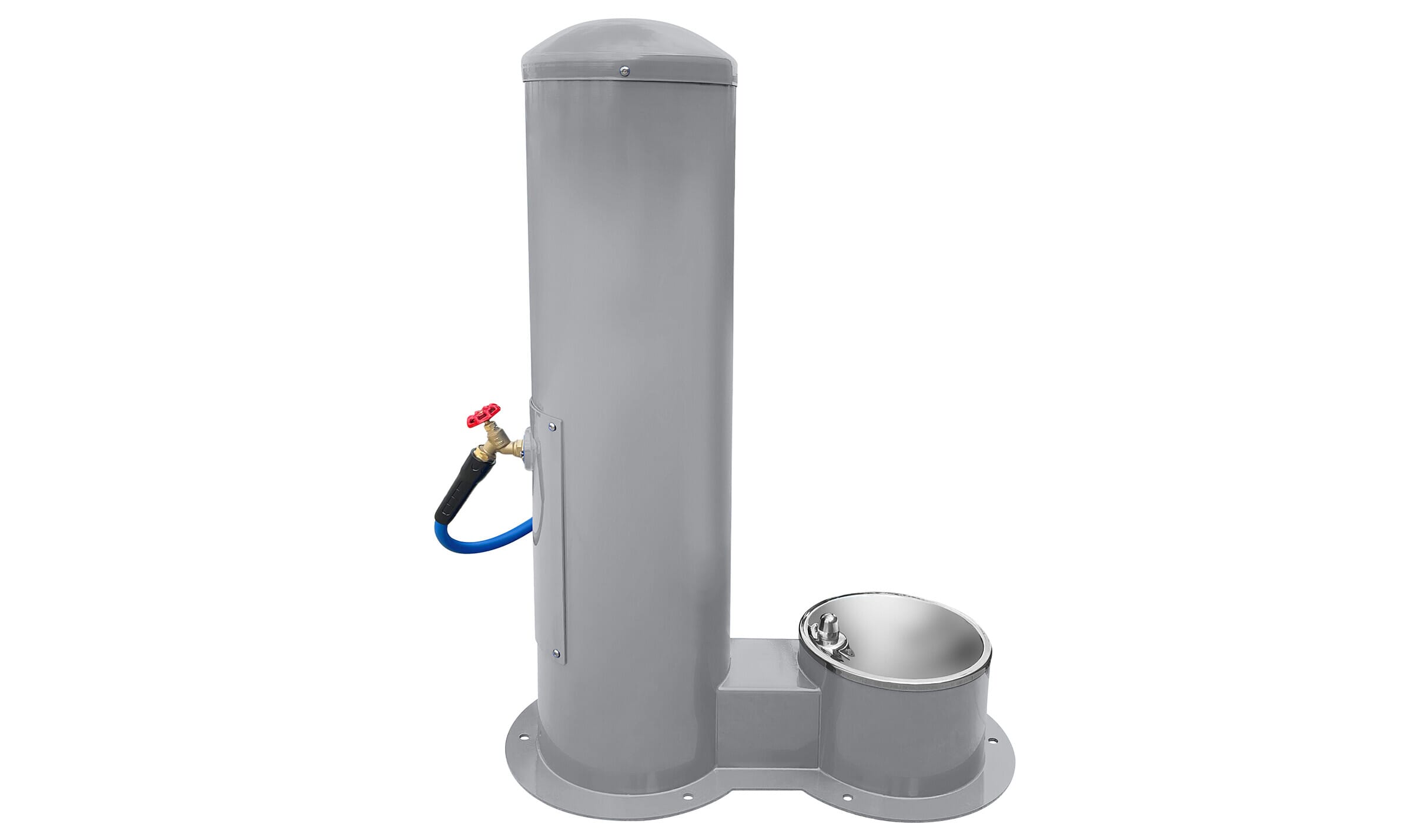 Outdoor Pet Bowl w/ Hose Bibb & Hose Holder/ Silver