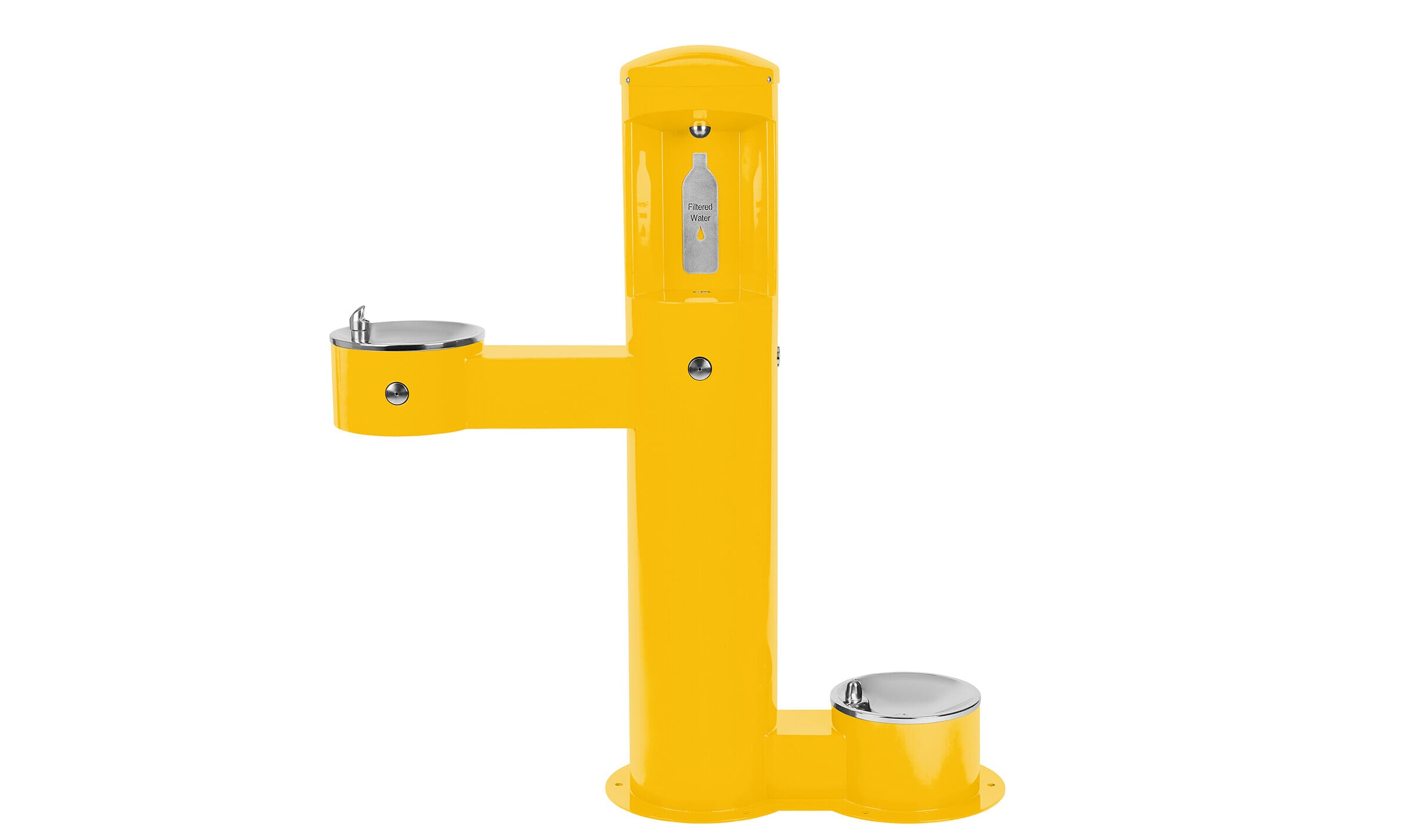 Outdoor Water Bottle Filler w/ ADA Drinking Fountain & Pet Bowl/ Yellow