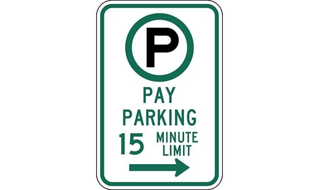 Parking Permitted 15 Minute Pay Parking with Right Arrow Sign