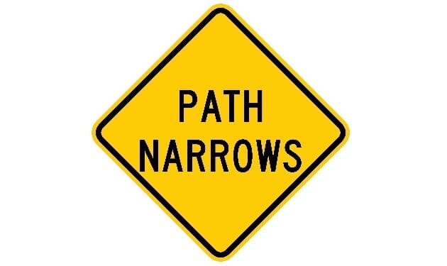 Path Narrows Warning Sign