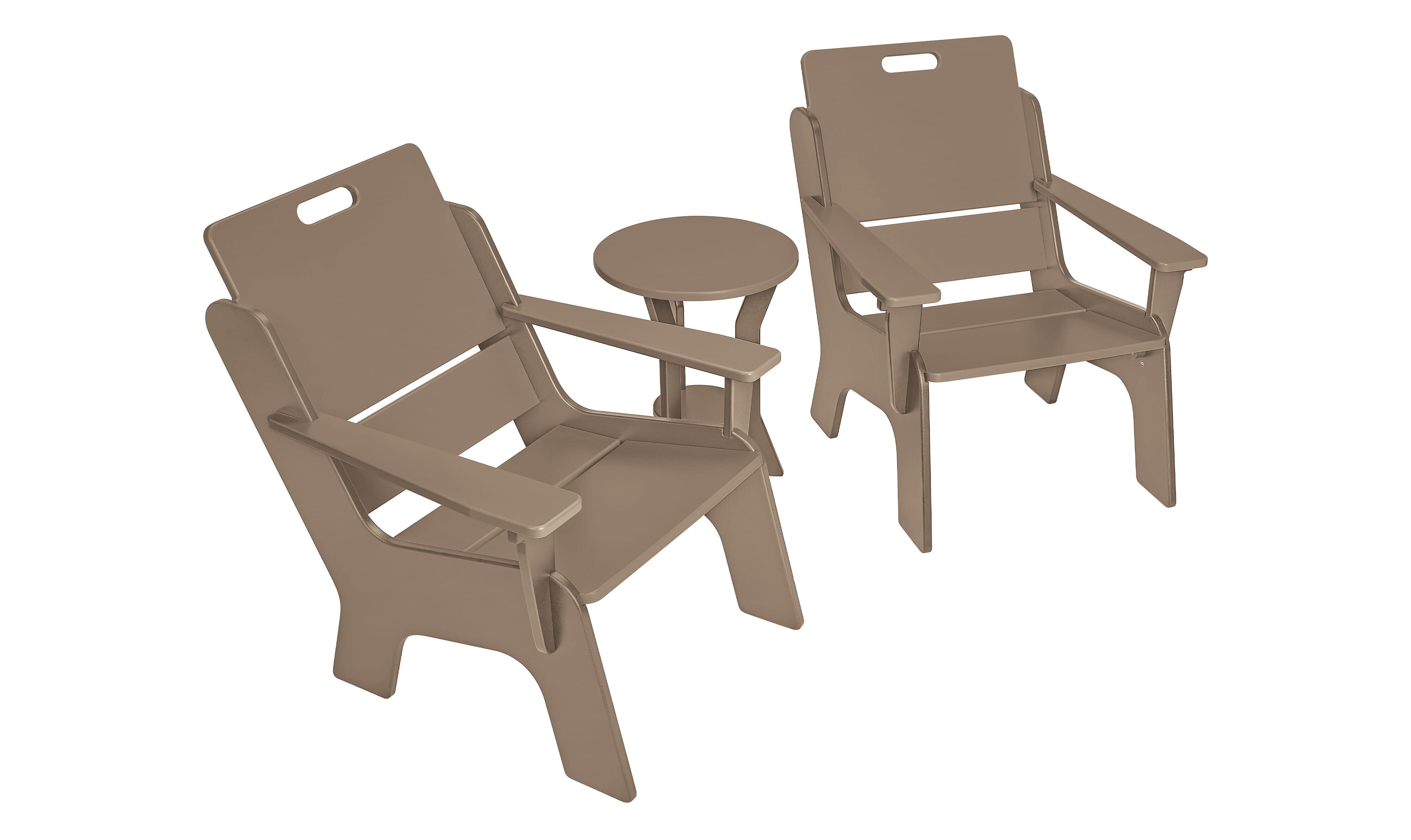- Modern 3-piece set includes two conversation chairs and one accent table