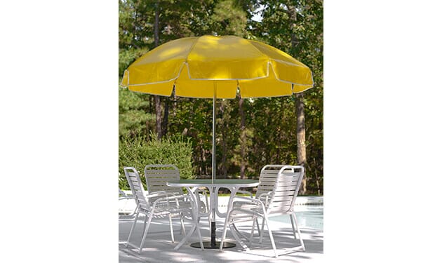 - 1.5" dia. anodized aluminum 2-piece pole with 8 zinc-plated steel ribs