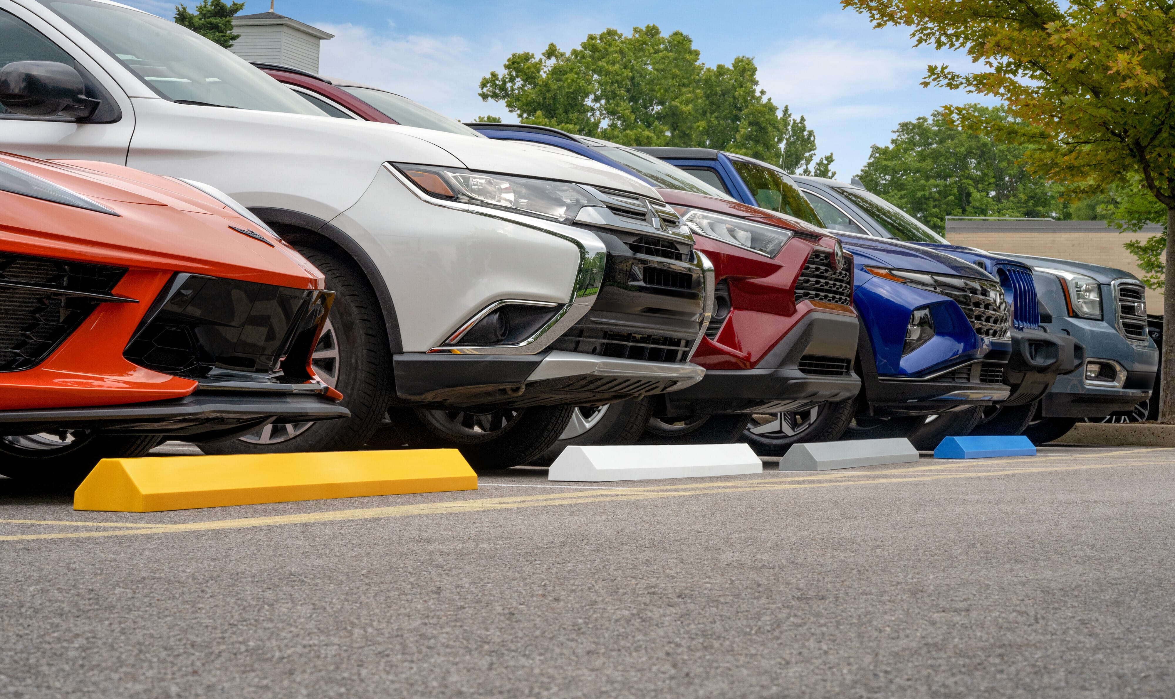 - Rubber wheel stops with solid color throughout