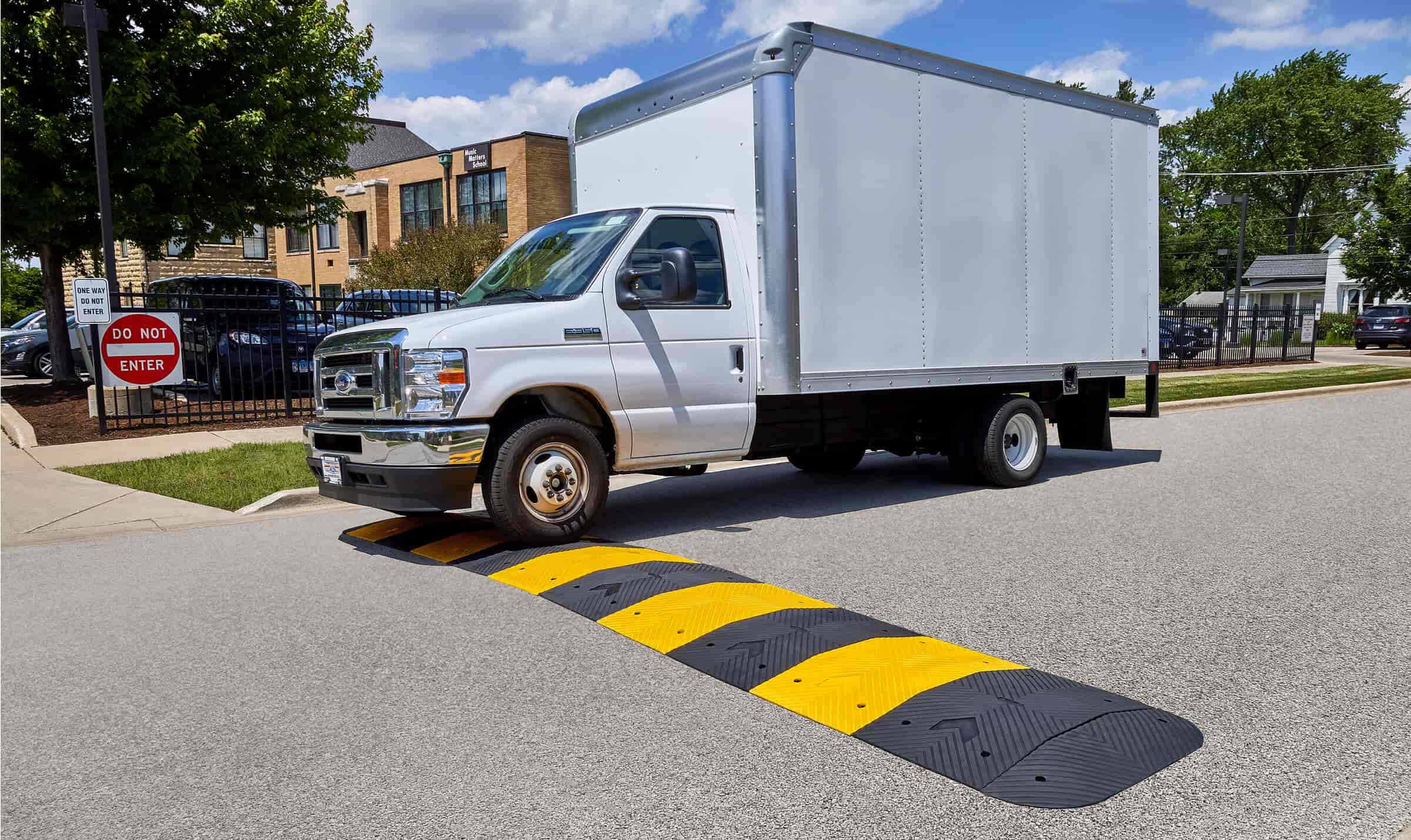- Substantial 2.75" high speed hump slows traffic without vehicle or tire damage