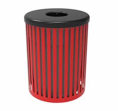- Plastic-coated slatted steel receptacles are offered in 8 colors