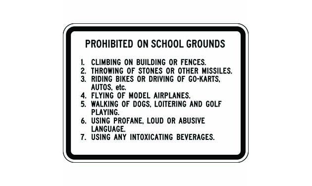 "Prohibited On School Grounds" Sign