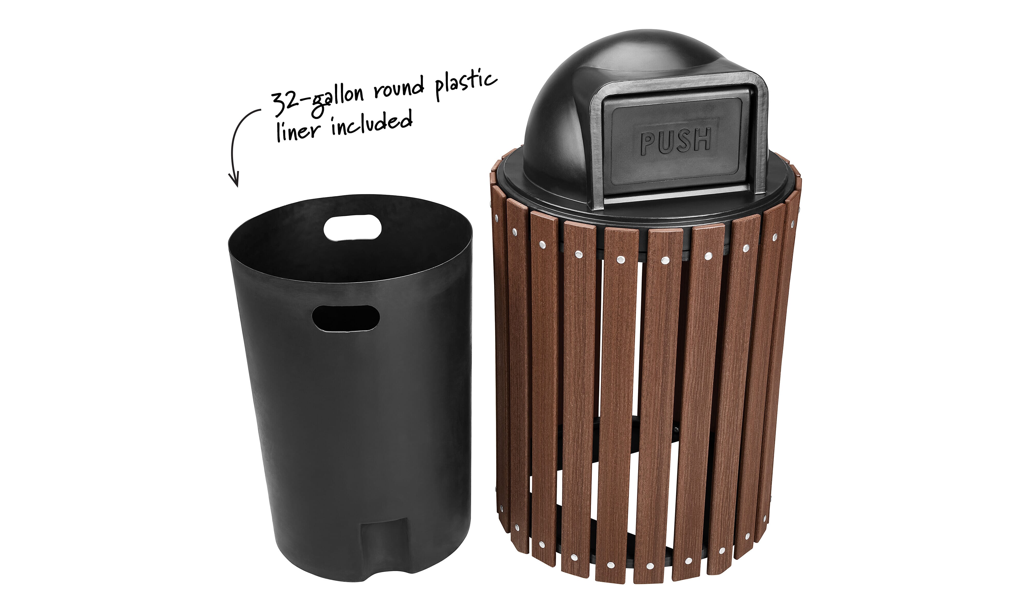 | Treetop Product Name | Fairfield 32 Gallon Receptacle with Dome Lid/ Teak |