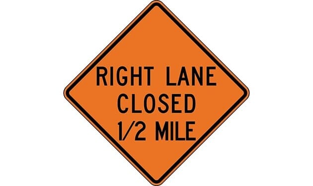 Right Lane Closed 1/2 Mile Construction Sign