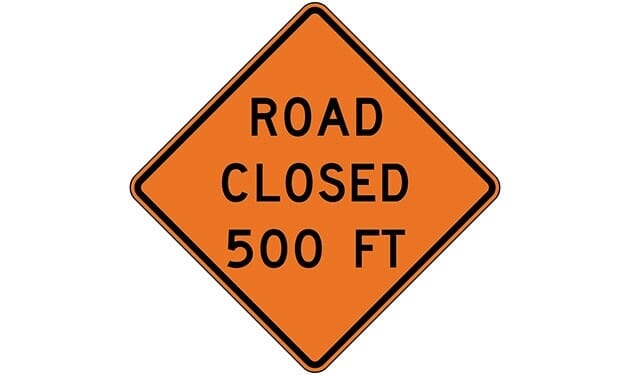 Road Closed 500 ft. Construction Sign