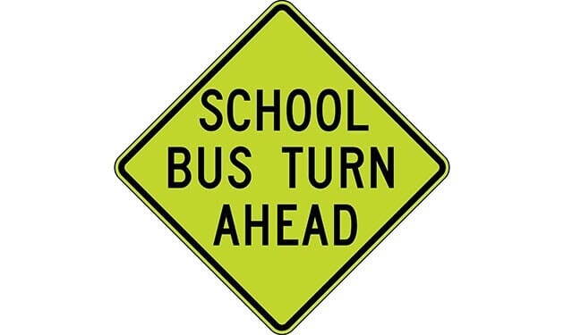 School Bus Turn Ahead Sign