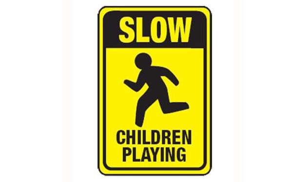 "Slow Children Playing" with Running Child Symbol