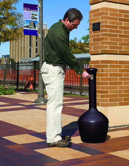 - No-rust, fire-safe polyethylene construction with handy perforated stainless steel snuffer